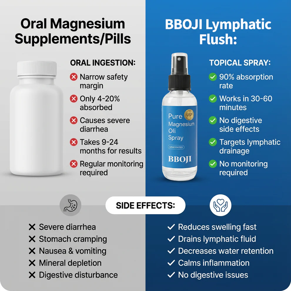 Unlike others, BBOJI delivers topical magnesium for rapid, targeted lymphatic drainage, reducing swelling and pain without digestive side effects and with specialist backing.