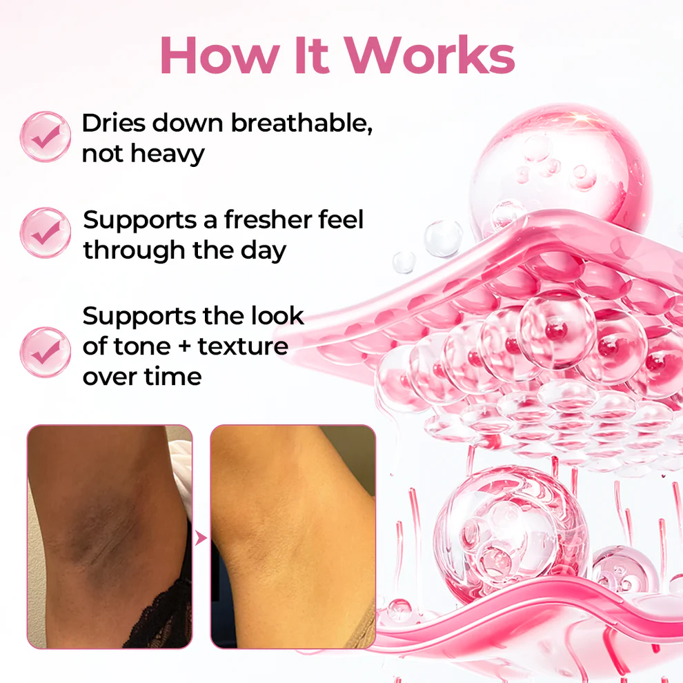 With regular use, it supports a smoother-looking surface and a more even-looking tone, especially where friction and dryness can make skin look dull or uneven.