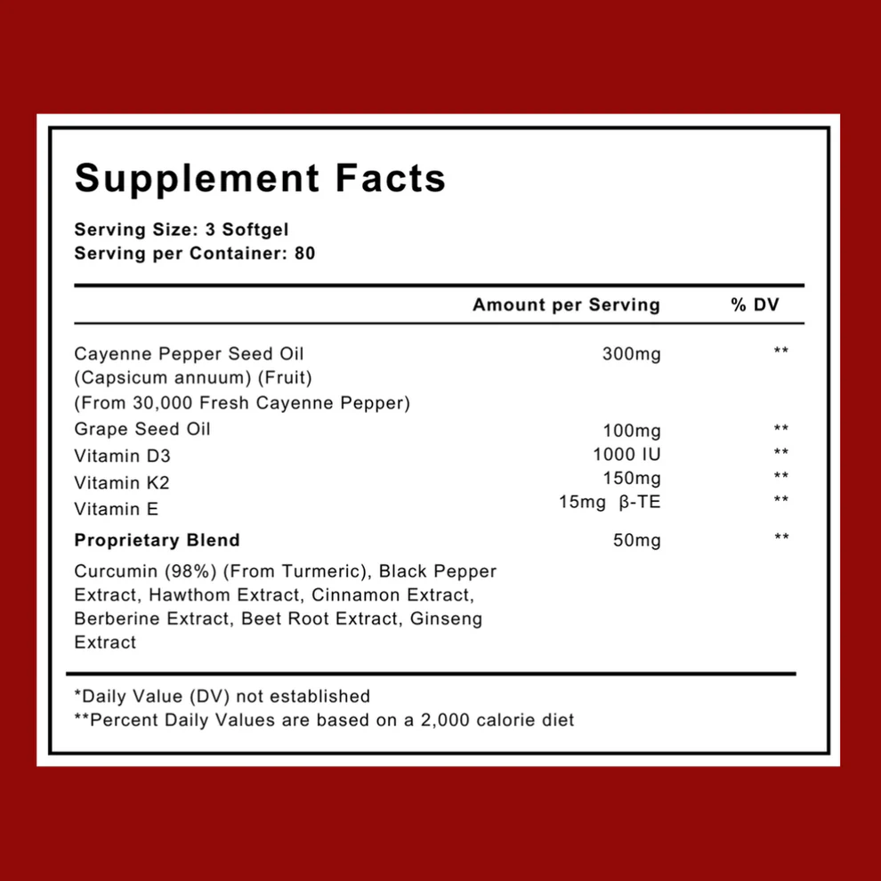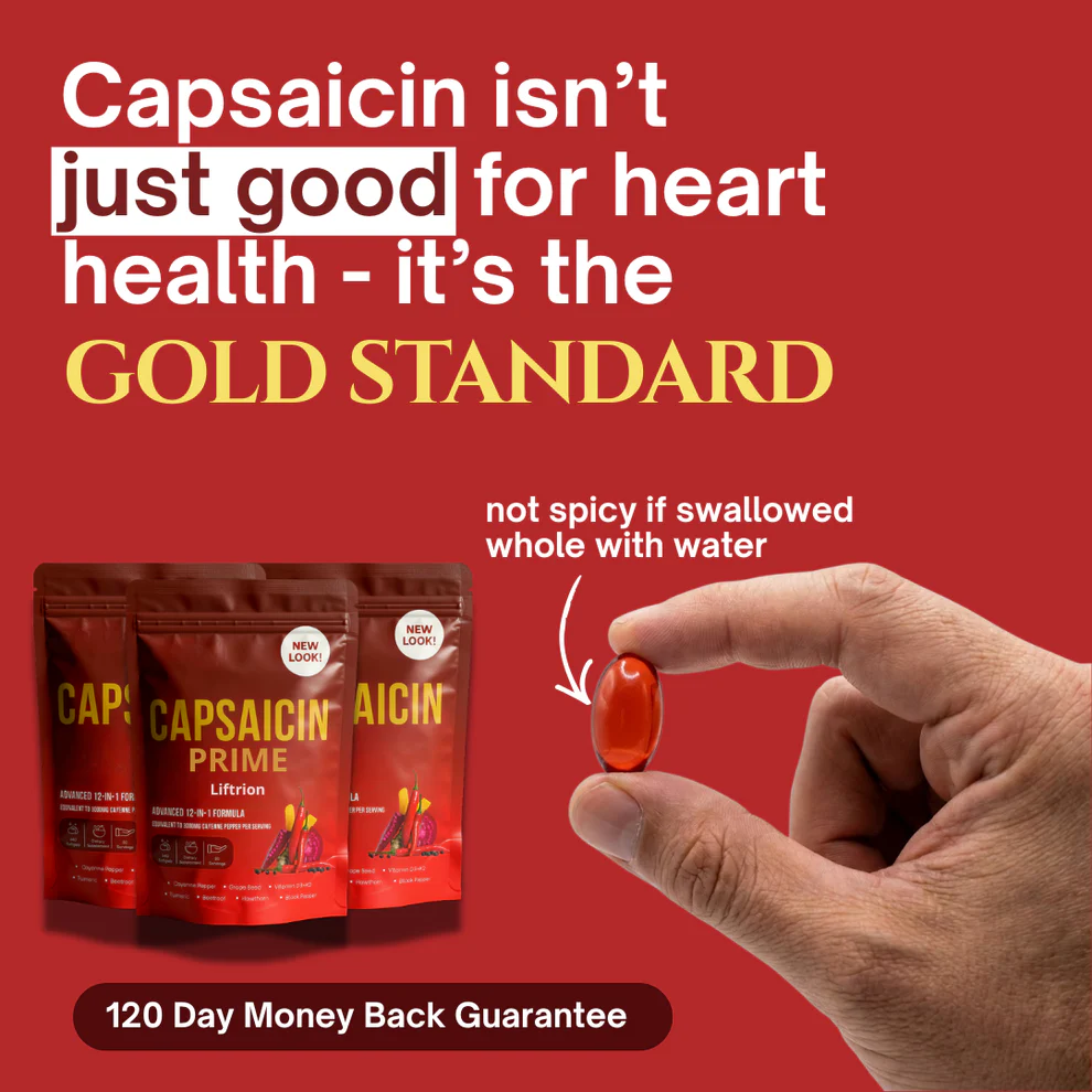 Liftrion Prime Capsaicin softgels boost blood flow and cardiovascular health with cayenne pepper beet root and essential vitamins for daily vitality