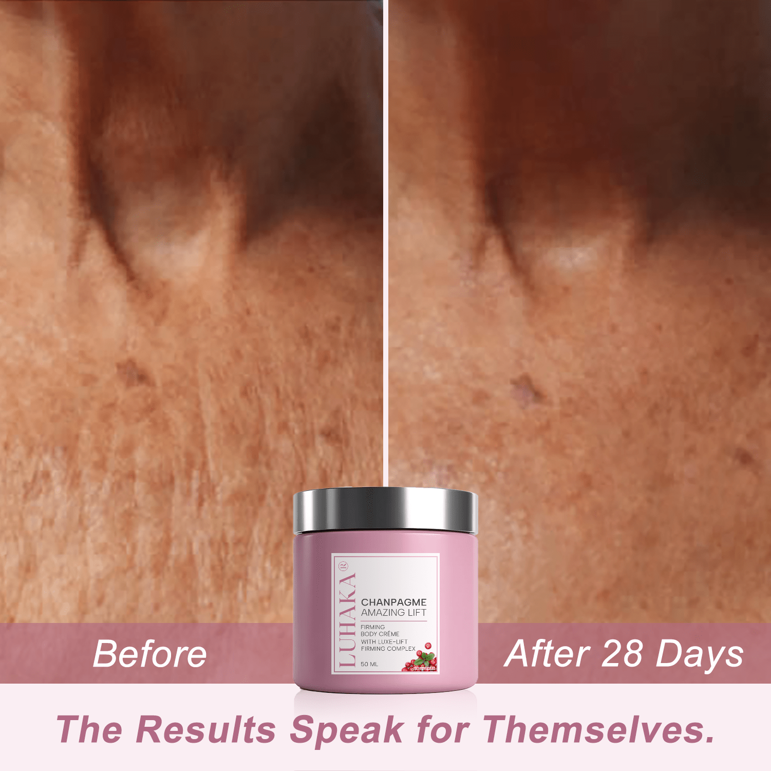 Watch your skin transform in just 28 days with consistent use of Champagne Beauty Lift Cream. From arms and thighs to belly and chest area, this luxurious formula targets sagging, crepey skin wherever it appears. By day 14, firmness and tone start to improve. At day 21, texture feels smoother and more elastic. By day 28, you’ll see a noticeable lift and youthful glow — without surgery, needles, or downtime.