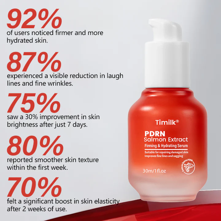Timilk PDRN Salmon Extract Firming Serum boosts collagen, hydrates deeply, improves elasticity, and delivers visibly smoother radiant skin fast